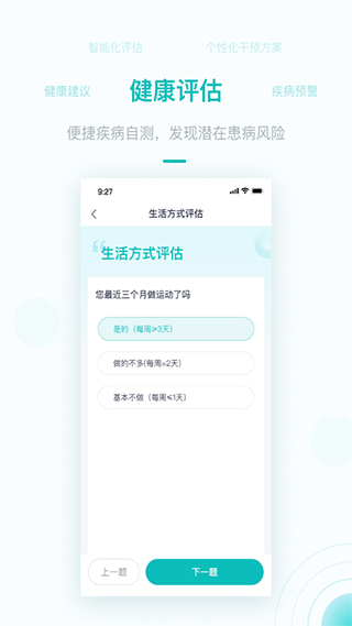 2、提供包含健康评估、健康报告、干预方案和今日行动四个主要功能,落实“健康管理三部曲”全过程。