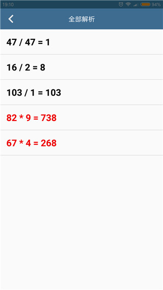 2、完成一题后就可以进行下一题,并且还会自动将计算错误的题目保存标记;