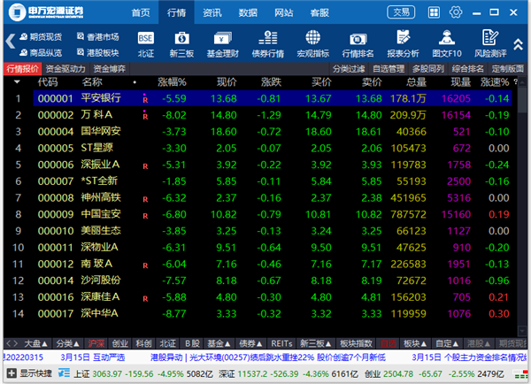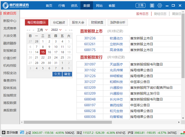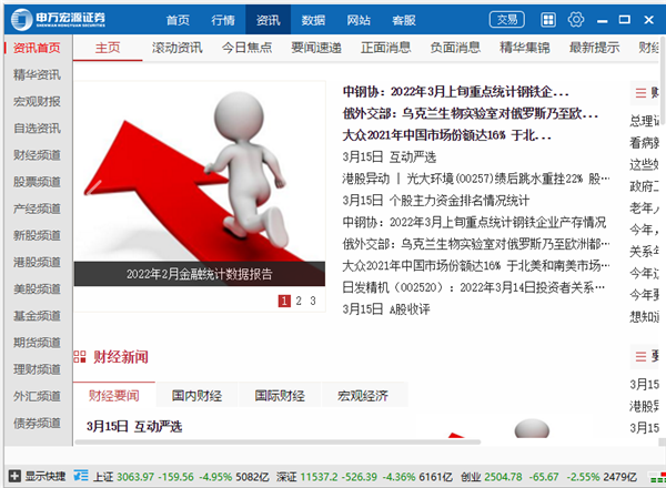 2、大盘分析,申万宏源证券市场主要大盘指数报价及行情走势。