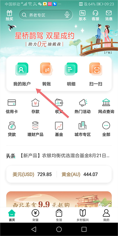 7、完成上述操作后即可再次返回到首页中点击【我的账户】中进行绑卡激活,激活成功后即成功开通了农行掌上银行服务了