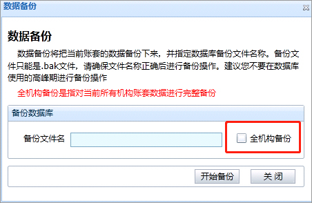 1、总部账套备份时可以选择是否备份子机构,子账套只能备份自己的数据;