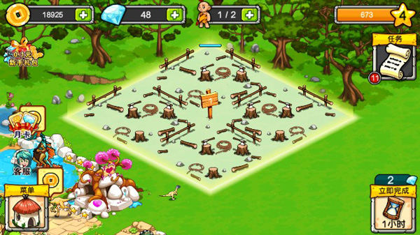 2、各类设施奖励,游戏中玩家可以建造救助中心、餐厅、驿站之类的设施,利用这些设施帮助恐龙后就会得到金币奖励;