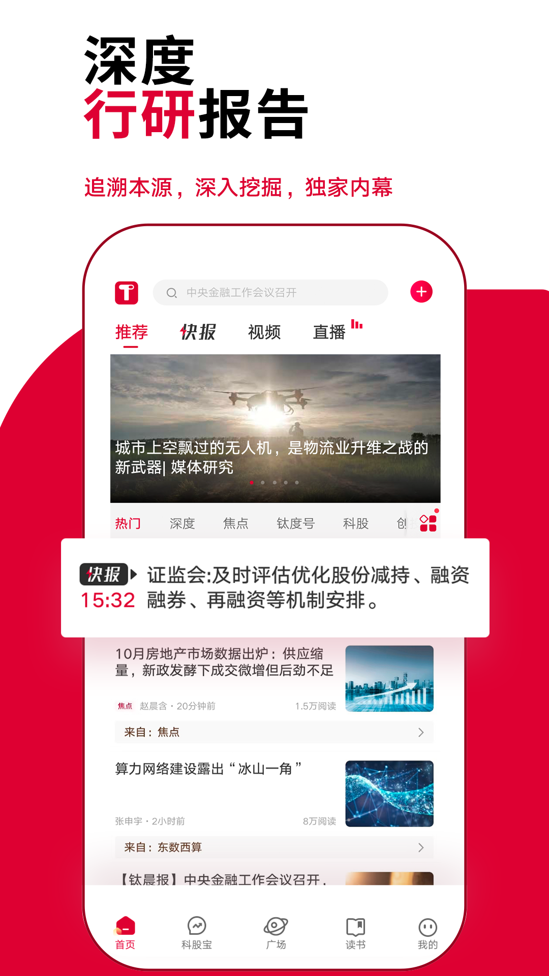 1、原创深度的新闻资讯,聚焦今日热点头条:专业的记者、编辑、运营团队通过真实案例、详细数据对产品技术、行业模式、商业价值进行采访报道,涉及互联网、金融、云计算、大数据、创业投资、O2O、电商、VR、娱乐等。众多科技创新与商业领域的见解独到的意见领袖,同钛媒体原创团队一起分析当下热点资讯。
