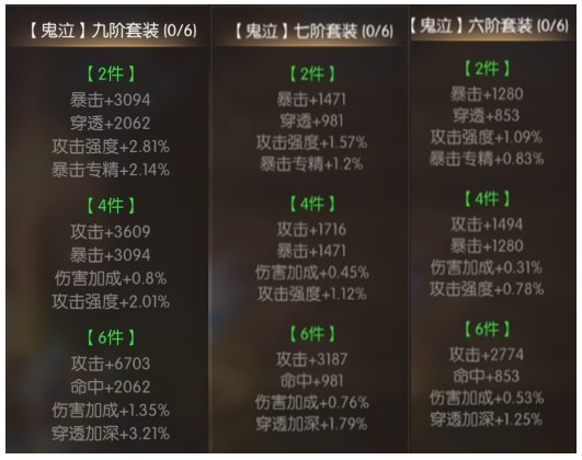 2.穿戴同阶的套装到达一定件数即可激活套装属性提高战力
