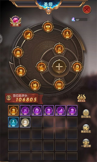 圣印可在背包出进入镶嵌,使战力大大提升。