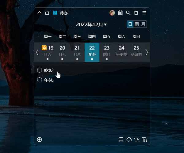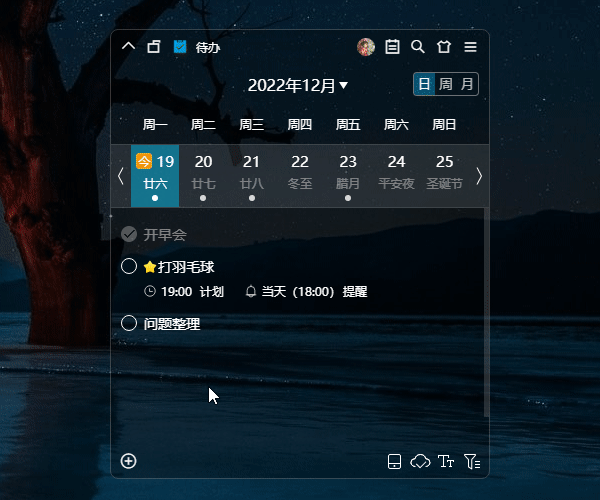 日历待办支持自由切换日/周/月视图,可以让你更直观地按照时间或日期查看待办事项,什么时候干什么事情一目了然。