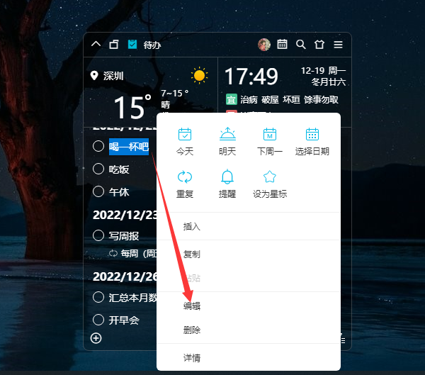 若需要编辑待办内容时,直接双击该待办或者是右键单击该待办,再点击“编辑”即可。