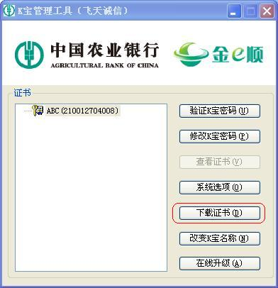 点击管理工具中的“下载证书”按钮,会直接进入中国农业银行下载证书的网页来进行下载证书等操作。