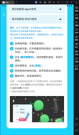 2、支持悬浮窗变声器,可在其他APP实时使用。