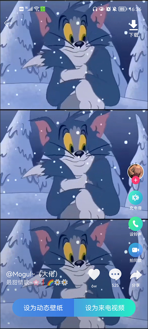 每天都会实制更新热门的来电视频、动态壁纸以及充电提示音等等,并且你还可以分享好听的音乐,没准上了热门榜哦。