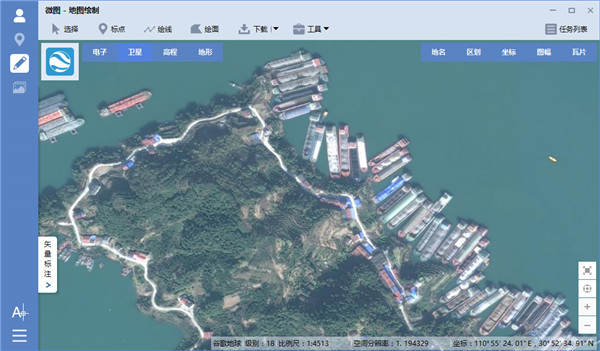 ps:本次小编带来的是水经微图4.0官方版,该版本功能丰富,可以下载所有以瓦片方式发布的在线地图并进行大图拼接、地图重投影、瓦片重切片、地图标注、矢量下载、矢量叠加、CAD制图、专业GIS绘制、照片管理和数据云同步等,且包括《水经注万能地图下载器》所有功能。