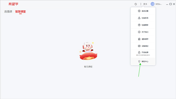 但是页面右上角有个【更多】按钮,点击这个按钮后就会有【帮助中心】