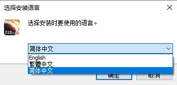 2、此时将弹出如下窗口,选择安装语言,点击下拉三角符可以选择安装语言,目前提供的语言安装环境包括:简体中文、繁体中文和English。