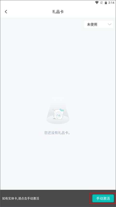 进入并点击【我-礼品卡-手动激活-卡号、卡密】。