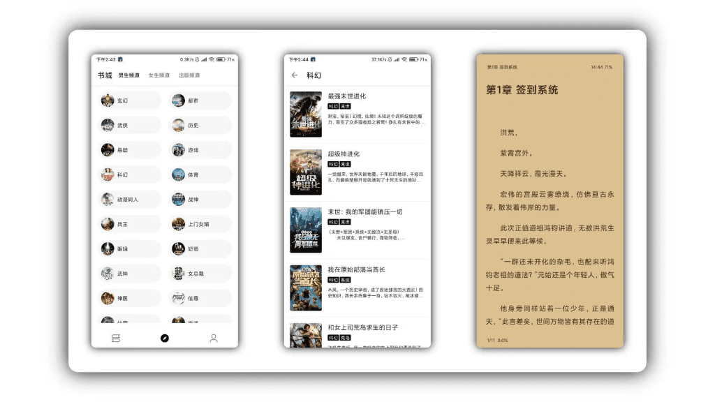 【使用说明】:一款全站免费的小说阅读软件,高质量内容的免费读,书籍种类丰富涵盖超广阅读范围,更有强大嗅探引擎加持,是追书必备小说软件,已经去除广告